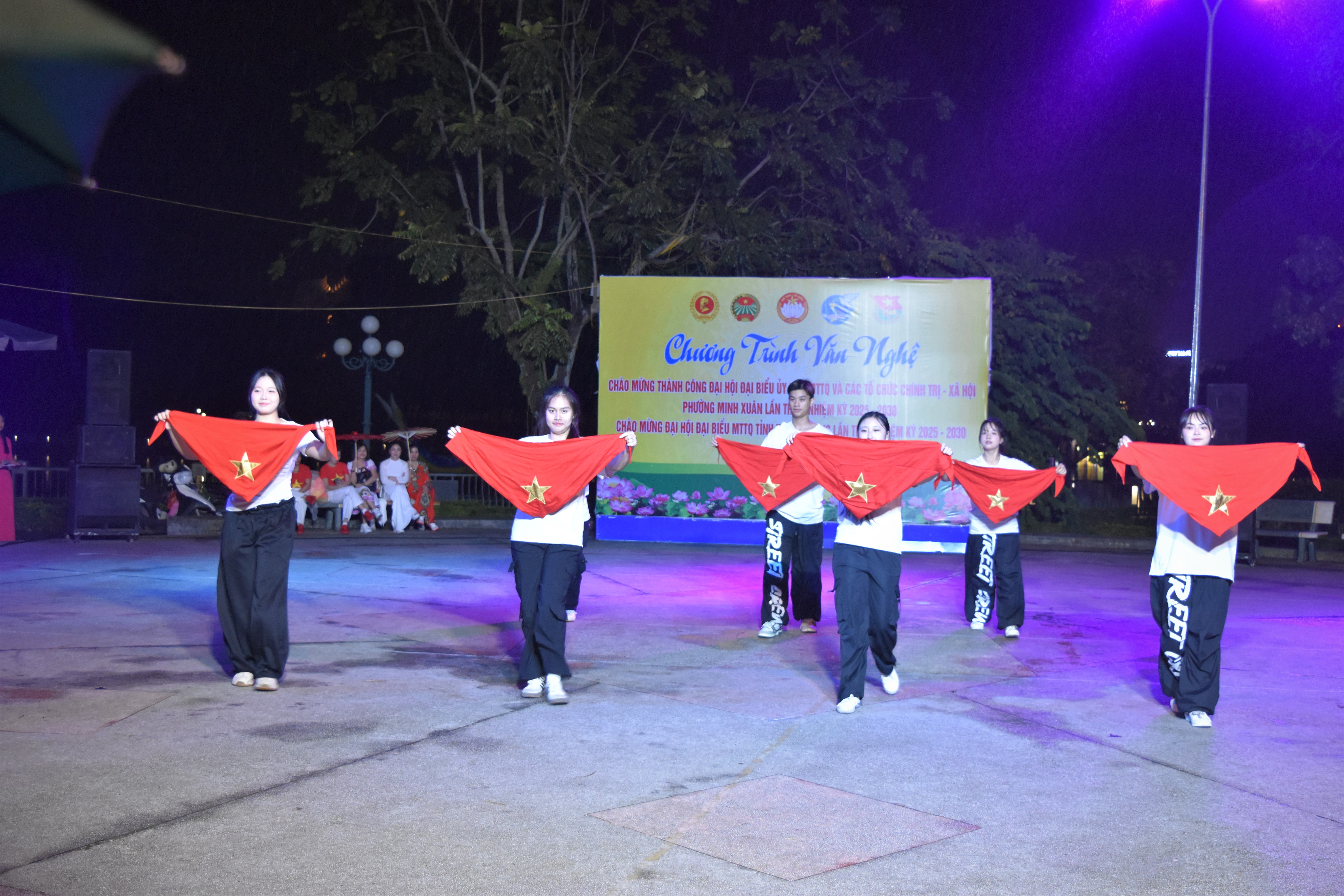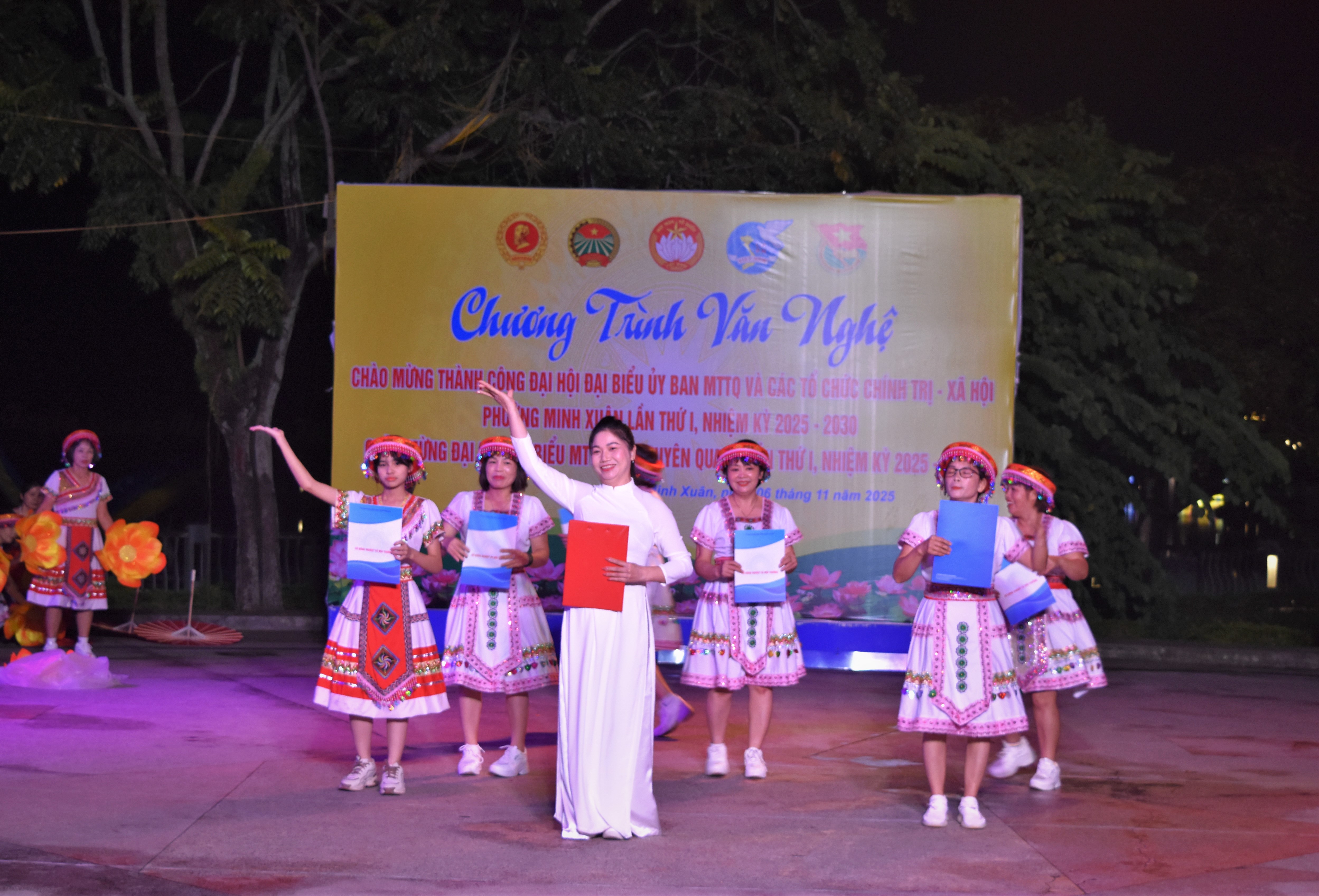Với chủ đề “Ca ngợi Đảng, Bác Hồ, quê hương, đất nước, khối đại đoàn kết toàn dân tộc”. Chương trình văn nghệ gồm 15 tiết mục văn nghệ đặc sắc do cán bộ, đoàn viên, hội viên, các tầng lớp nhân dân đến từ các tổ chức: Đoàn Thanh niên, Hội Liên hiệp Phụ nữ, Hội Cựu chiến binh, Hội Nông dân và các câu lạc bộ văn nghệ trên địa bàn phường Minh Xuân dàn dựng, biểu diễn, phản ánh sinh động không khí thi đua sôi nổi, lan tỏa niềm tin yêu và khát vọng xây dựng quê hương ngày càng giàu đẹp. Chương trình văn nghệ không chỉ tạo khí thế phấn khởi, cổ vũ phong trào thi đua yêu nước mà còn khẳng định vai trò, vị trí của Mặt trận Tổ quốc và các tổ chức chính trị – xã hội trong việc phát huy sức mạnh khối đại đoàn kết toàn dân trong thời kỳ mới, góp phần xây dựng phường Minh Xuân ngày càng văn minh, hiện đại.